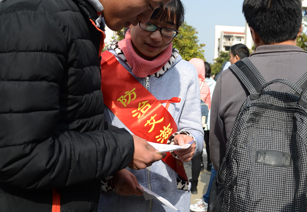 “这是我们健康之家第二次与校医院合作,共同举办预防艾滋的系列活动。”健康之家协会负责人邓玉翔说。在活动现场,来自该协会的同学们竖起了防治艾滋的宣传牌,拉出了供大家签名留念的防治艾滋横幅。值得一提的是,除校医院与健康之家协会外,本次预防艾滋活动还吸引了beat365绿源、青协等8个公益服务类社团志愿者们的参与。他们纷纷佩戴上红丝带,向来往的同学们分发“预防艾滋病,青少年责无旁贷”的宣传册,介绍相关艾滋知识。同时,本次宣传活动得到了宜秀区疾控中心的大力支持。