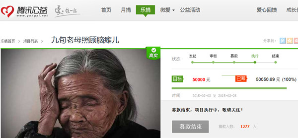 腾讯公益•九旬老母照顾脑瘫儿:http://gongyi.qq.com/succor/detail.htm?id=2033