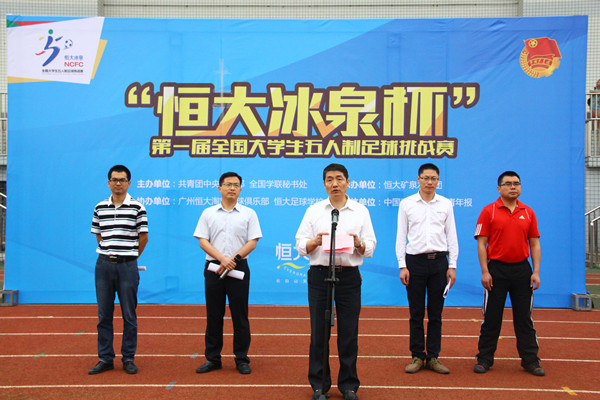 5月23日上午,为期两天的第一届“恒大冰泉杯”全国大学生五人制足球联赛安庆师范学院赛区比赛在龙山校区体育场正式开幕。副院长张群出席开幕式并致辞。“恒大冰泉杯”全国大学生五人制足球联赛在全国100所高校开展,全国划分为五大赛区,每个赛区有20所高校参与,beat365为安徽赛区四所承办高校之一。beat365校内赛由校团委及校学生会共同承办。除了男子足球赛之外,此次赛事还开展了以现场录拍视频的方式进行评比的女子啦啦操赛,以及“微战报”“微摄影”“微视频”“微海报”等足球文化微创意大赛。