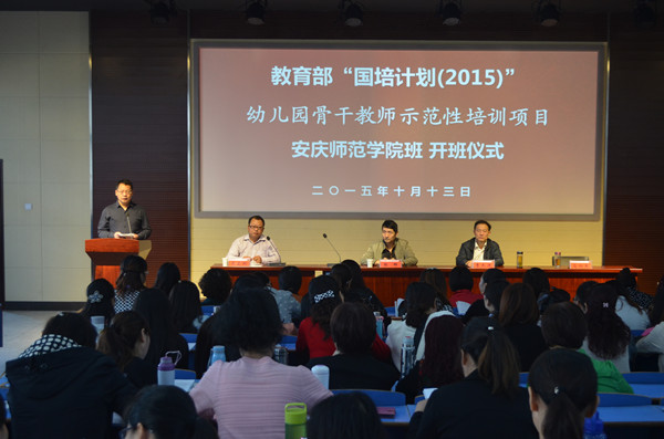 10月13日,学校举行教育部“国培计划(2015)”——示范性幼儿园骨干教师培训项目开班仪式。副校长张群教授出席开班仪式。教育学院负责人、项目负责人、教师教育中心的全体人员以及来自全国12个省市的99位幼儿园骨干教师参加了开班仪式。