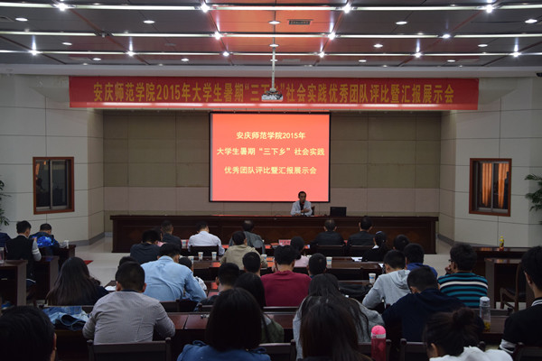 10月14日下午,学校举行2015年大学生暑假“三下乡”社会实践优秀团队评比暨汇报展示会。校党委委员、组织部部长陈光明及宣传部、财务处、教务处、学生处、团委等部门负责人应邀担任评委,各学院团总支负责人、各实践团队成员及学生代表共200余人参加汇报会。