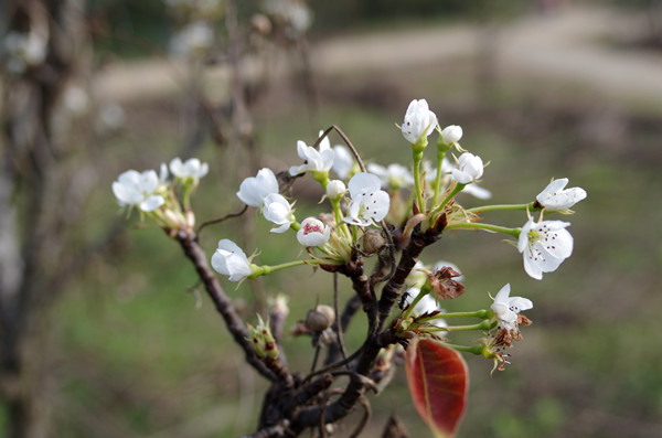 生命科学学院从事植物分子系统与生物地理学研究的王广艳老师指出,这是因为梨树对水的反应比较敏感,今年国庆期间有大量降水,加上近几天天气晴朗,温度偏高秋季夜间气温较低,当年形成的花芽完成一定的低温积累后,再遇秋季雨水充足的外部自然环境,使得刚分化的花芽开放。(夏建华/摄影 学生记者 王文钦/文)