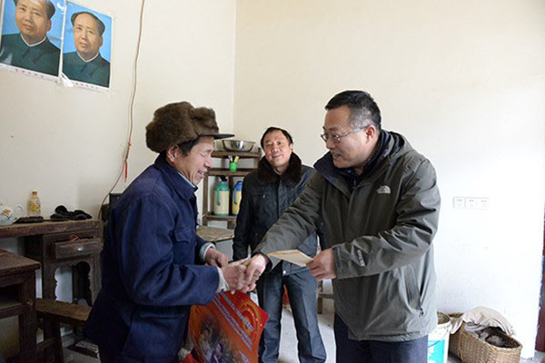 随后,慰问组一行分别深入该村四屋、毛屋、大屋、杨树四个组的部分特困户家中走访慰问,向他们送去节前的问候和祝福。每到一处,慰问组还详细询问、了解困难户的生产生活情况和致贫原因,真切感受困难户的疾苦冷暖与愿望心声,并向困难户送去了慰问金。(钱敏)