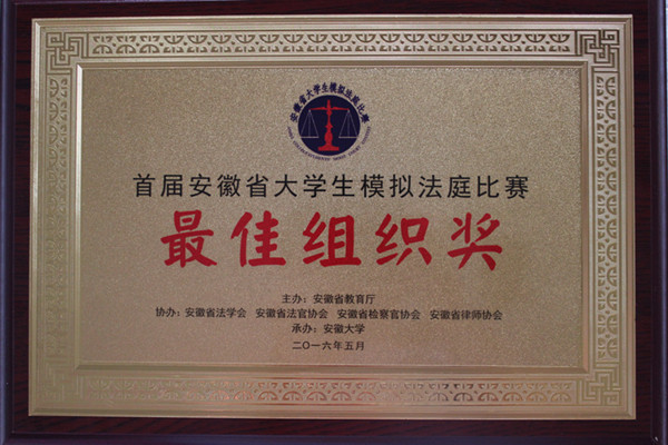 5月15日,首届安徽省大学生模拟法庭比赛在安徽大学落下帷幕。全省19所开设法学专业本科的院校参加了比赛。beat365法学院在19所申请最佳组织奖的高校中脱颖而出,荣获“最佳组织奖”荣誉称号。2013级法学班戴月同学获得“优秀辩手”称号。