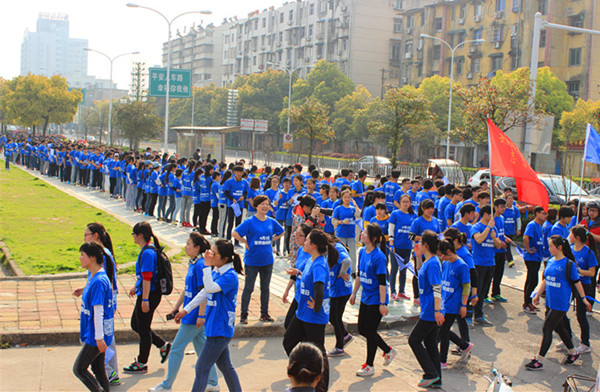早晨6点45分,300名志愿者在南门集合。其中250人作为第一方阵,分乘5辆车到达凯旋尊邸,他们需慢跑6公里左右到达科技广场;其余50人作为第二方阵,乘车前往科技广场,慢跑约3.5公里至人民路金华联超市。
