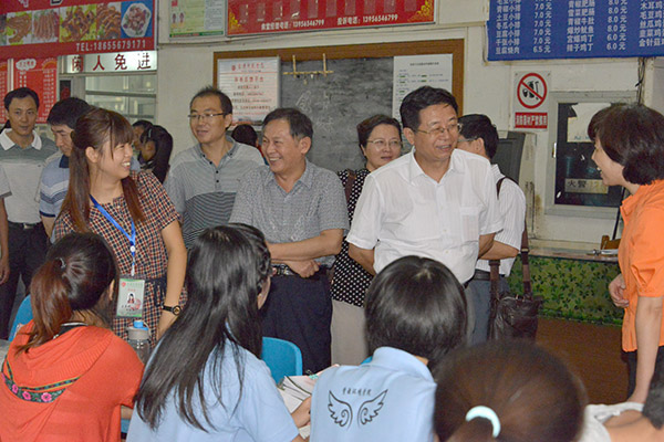 校领导何小祥、朱士群、殷红、闵永新、张群、汪时珍、刘友忠等亲临新生报到点检查指导迎新工作,慰问承担迎新工作的师生员工,看望新生和家长。