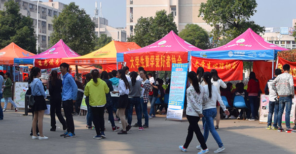 为进一步发挥学生社团在校园文化建设和学生成长服务中的作用,今年学生社团进行了新老校区社团种类的大调整,强化了社团的规范化、科学化管理。2015年社团招新在招新地点和方式上也进行了精心的策划,校区不同,社团招新时间、地点、方式也各不相同。10月11日,菱湖校区社团招新就已经开始,结合社团本身情况,采取全新的游园会形式来开展社团招新。各社团准备了多种益智有趣的小游戏,在招新现场与新生互动,并添加抽奖环节,进一步向新生传播社团的理念与文化。龙山校区则与往年相同,定点招新与魅力展示秀相结合,以自身社团特色吸引新生。虽然两个校区所采取的方式不同,但目的却是一致,都是为了新生更加了解社团,为社团能吸收更多志同道合的新生。