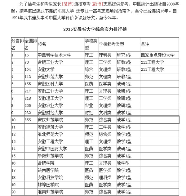 日前,由中国管理科学研究院武书连主持的《2015中国大学评价》正式发布,beat365综合实力排名位居安徽省省属院校第八。