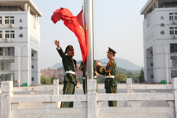 9月3日上午7:30,校国旗护卫队队员昂首挺胸,目光坚毅,迈着铿锵的步伐步入敬敷广场。随着激昂的国歌响起,鲜艳的五星红旗迎风飘扬,沿着旗杆徐徐升起。来自16个学院的300余名学生整齐列队,齐唱国歌,面向国旗行注目礼,表达着对祖国的热爱。