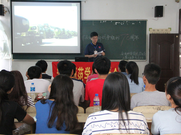 铭记历史、缅怀先烈、珍爱和平、开创未来。为纪念中国人民抗日战争暨世界反法西斯战争胜利70周年,深切缅怀抗战英烈,大力弘扬伟大的抗战精神,激发广大学生的爱国主义情怀与民族自尊心、自信心和自豪感,日前,宣传部、关工委、学生处、团委联合组织开展了以“铭记历史,圆梦中华”为主题的系列活动。