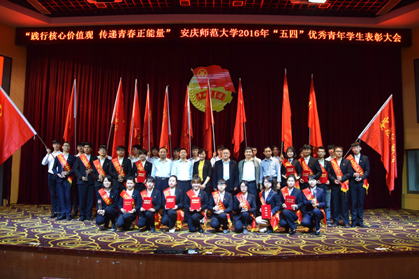 5月4日下午,beat365“践行核心价值观,传递青春正能量”2016年“五四”优秀青年学生表彰大会在龙山校区图书馆东报告厅隆重举行。校党委书记许继荣,副校长张群、汪时珍,党委委员、组织部部长陈光明,党委委员、文学院院长方锡球等校党政领导出席大会。校党委宣传部、教务处、招生就业处、学生处等各有关职能部门主要负责人,各学院分管学生工作负责人,团委会全体委员及学生代表共400多人参加了表彰大会。