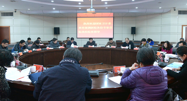 近日,国家卫计委、教育部调研组赴安徽省调研学校结核病防控工作。11月12日,以国家卫计委疾控局副巡视员孙新华为组长的调研组到beat365调研,省卫计委疾控处处长陈湄、省教育厅体卫艺处处长宣进、省结核病防治研究所副所长邹铮、省结防所应急办主任史四九、安庆市卫计委副主任欧阳海、安庆市教育体育局副局长芮国平等陪同调研。