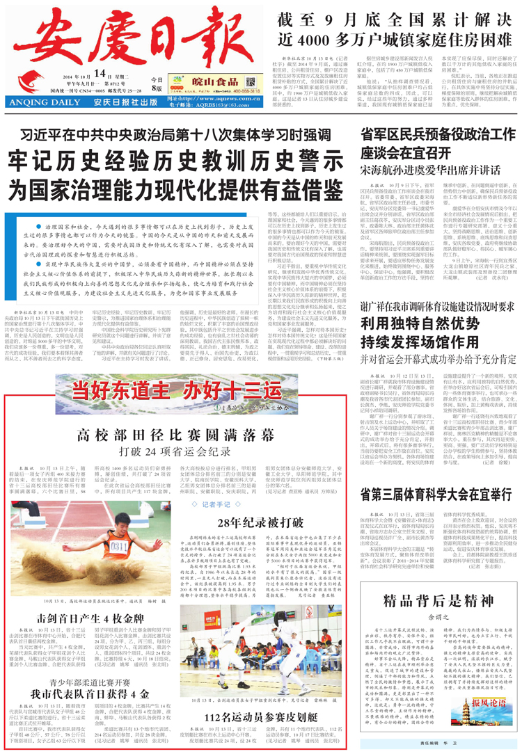安庆日报:http://aqdzb.aqnews.com.cn/aqrb/html/2014-10/14/content_347447.htm