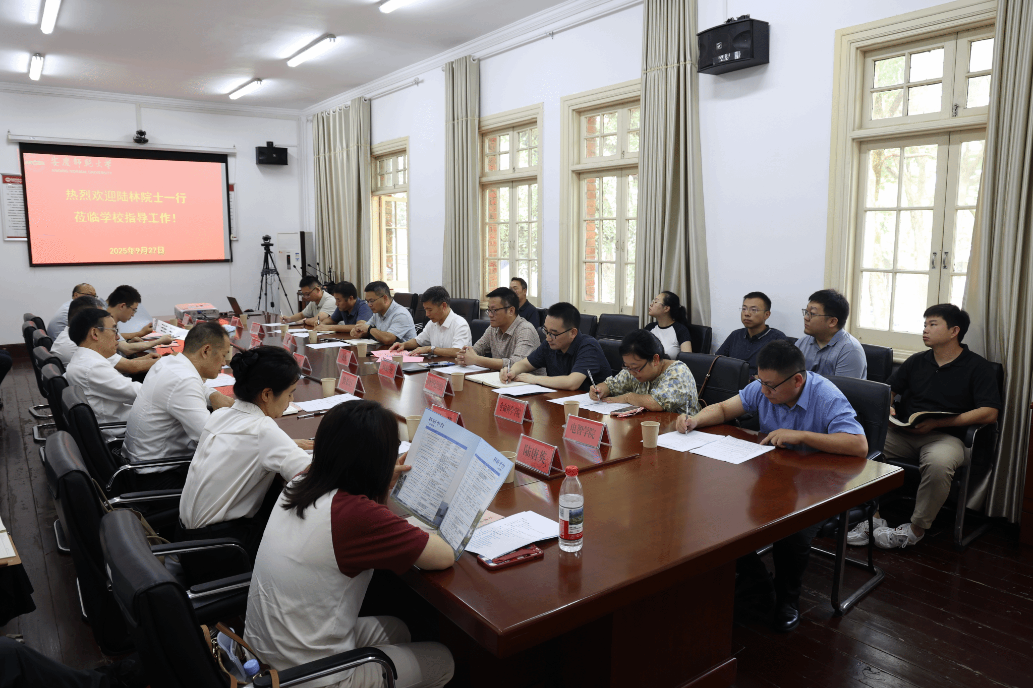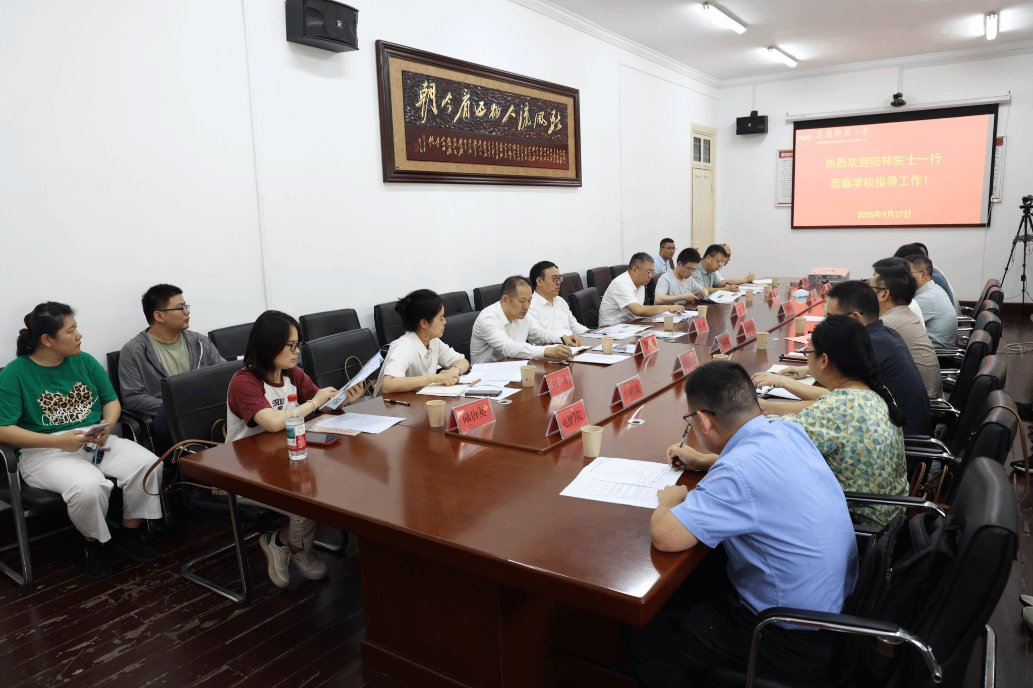9月27日,中国科学院院士、山东第一医科大学校长陆林一行在安庆市委副书记廖强的陪同下来校考察指导并参加座谈会。校长彭凤莲会见了陆林院士一行,校党委常委、副校长申传胜主持座谈会。