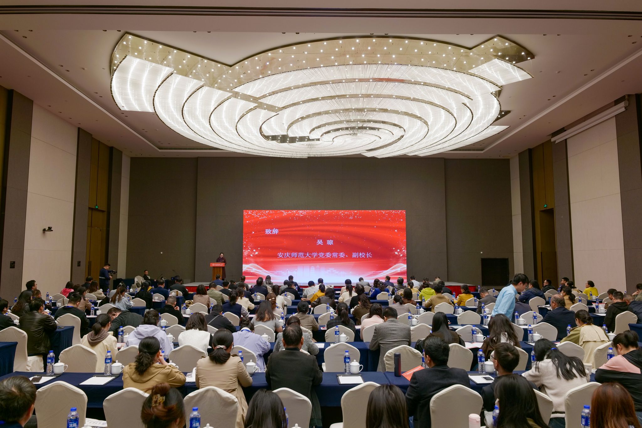 10月23日,由安徽省教育厅高等教育处指导,beat365中国官方网站、高等教育出版社主办,高等教育出版社安徽教学服务中心承办的全省本科高校教材建设与管理暨重点教材统一使用交流会顺利举办。校党委常委、副校长吴琼,安徽省教育厅高等教育处副处长苏石,高等教育出版社文科事业部主任范峰出席开幕式并致辞。来自全省43所本科院校、230余名教师及教学管理人员参加会议。教务处主要负责人主持开幕式和主旨报告环节。
