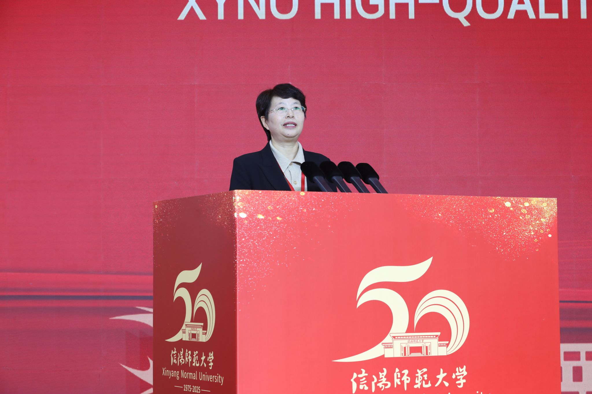 10月28日,校长彭凤莲应邀出席信阳师范大学建校50周年高质量发展大会,并作为大别山革命老区高校联盟代表致辞。