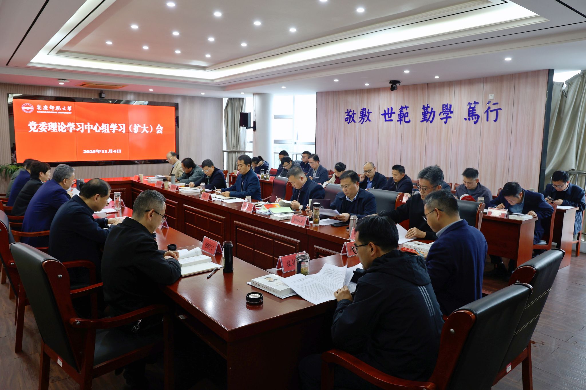 李福华要求,要充分认识党的二十届四中全会的重大意义。在接续推进中国式现代化建设的关键时期,党的二十届四中全会在新的起点上擘画发展蓝图、规划实践路径、作出战略部署,通过的《中共中央关于制定国民经济和社会发展第十五个五年规划的建议》全面贯彻习近平新时代中国特色社会主义思想,围绕全面建成社会主义现代化强国、实现第二个百年奋斗目标,以中国式现代化全面推进中华民族伟大复兴,擘画了未来五年我国发展的宏伟蓝图,是指导国民经济和社会发展的纲领性文件。《建议》确定的“十五五”时期经济社会发展主要目标,对于团结动员全党全国各族人民共同努力,确保基本实现社会主义现代化取得决定性进展,具有十分重要的意义。要深刻领会党的二十届四中全会的精神实质。全会最重要的成果是审议通过了《中共中央关于制定国民经济和社会发展第十五个五年规划的建议》。《建议》提出“十五五”时期经济社会发展,要坚持以推动高质量发展为主题,以改革创新为根本动力,聚焦制约高质量发展的体制机制障碍,推进深层次改革。要把学习贯彻全会精神与贯彻落实全国教育大会精神、习近平总书记考察安徽重要讲话精神结合起来,深刻领悟“两个确立”的决定性意义,增强“四个意识”、坚定“四个自信”、做到“两个维护”,保持战略定力,增强必胜信心,积极识变应变求变,集中力量办好自己的事,向着中国式现代化的光明前景迈进。要加快推动党的二十届四中全会精神落实落地。精心组织学习宣传,坚持全面系统学、持续深入学、联系实际学,通过中心组学习、教职工政治理论学习、“三会一课”等方式精读细研习近平总书记重要讲话、全会《公报》和规划《建议》,切实吃透精神实质,精准把握实践要求,以上率下带动广大师生学深悟透、入脑入心。精心组织宣传宣讲,创新方式方法,增强宣传宣讲的吸引力和感染力,切实把全会精神讲准确、讲全面、讲透彻,更好地用全会精神鼓舞人心、激发信心。全力推动全会精神落地见效,紧扣全会部署要求,紧密对接教育强国建设规划纲要,系统衔接三年行动计划,高质量编制学校“十五五”规划和强校建设三年行动计划(2025—2027年),全面贯彻落实《建议》提出的各项任务,团结奋进,改革创新,在现代化美好安徽建设中彰显安庆beat365新担当、展示安庆beat365新作为,奋力推进特色鲜明的高水平现代大学建设。(撰稿、摄影: 田梦甜 编辑:范龙超 审核:陈广 赵丽丽)