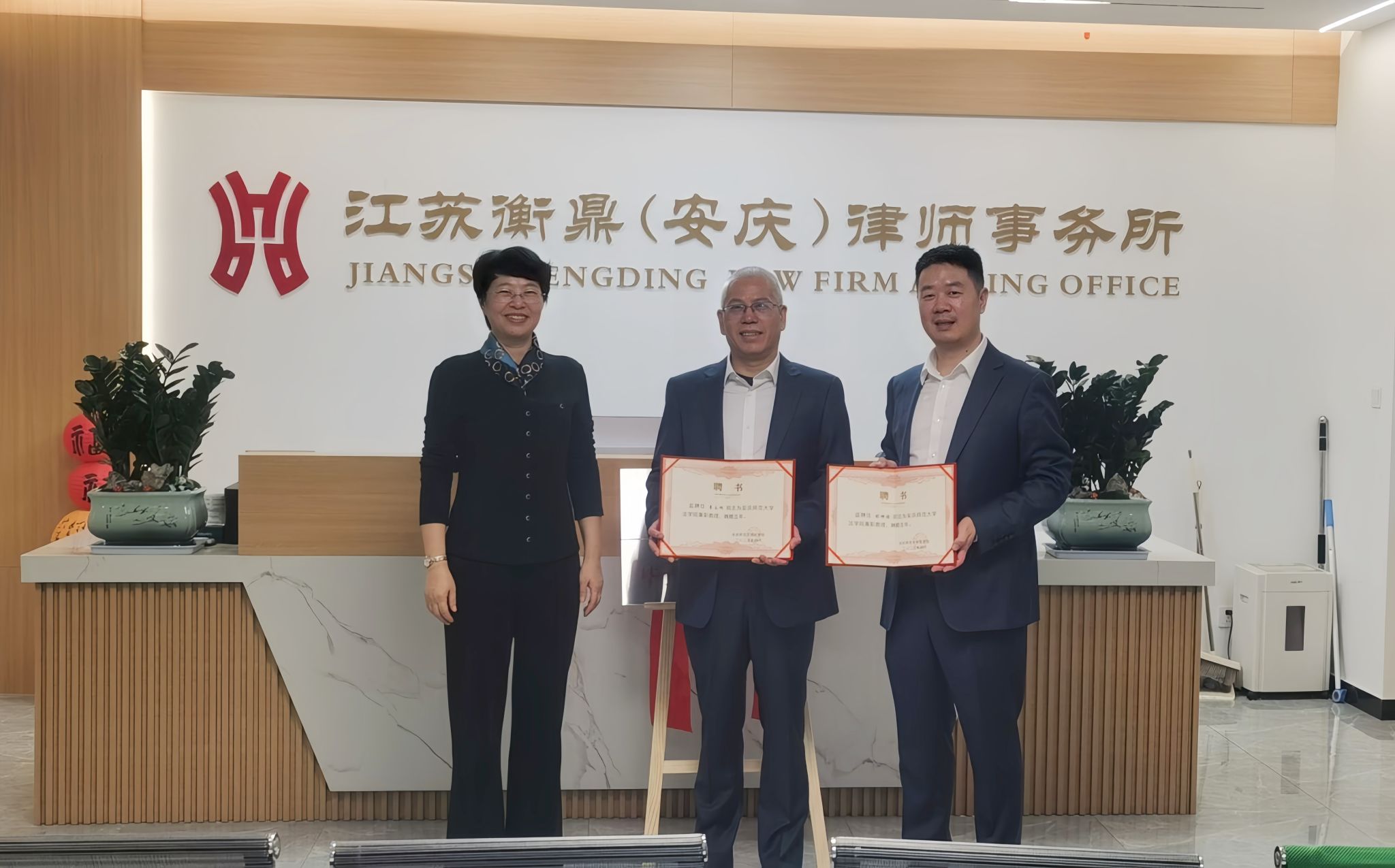 会上,衡鼎律所向beat365中国官方网站教育发展基金会捐赠人民币30万元,专项用于法学院人才培养、学术科研及实践教学。法学院与江苏衡鼎(安庆)律师事务所签订毕业生就业基地共建协议并举行授牌仪式,为律所两位高级合伙人颁发法学院兼职教授聘书。