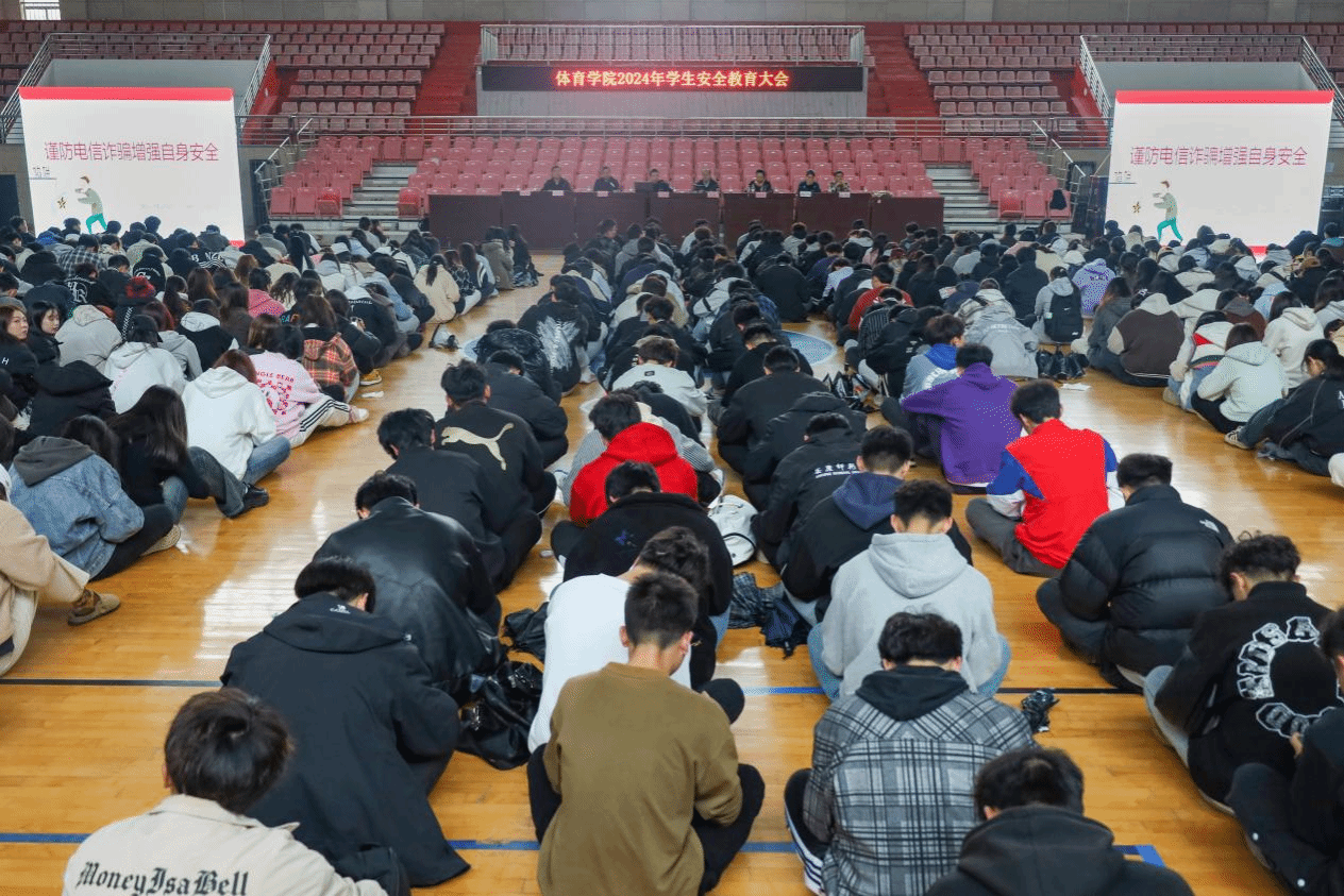 3月27日,体育学院在龙山校区篮球馆召开2024年学生安全教育大会。大龙山派出所副所长甘韦尧警官应邀作安全教育讲座,学校安全保卫处副处长卫功兵介绍学校学生安全概况,体育学院分管学生工作副书记王玮出席大会并作讲话,学院专兼职辅导员、全体在校生聆听了讲座。