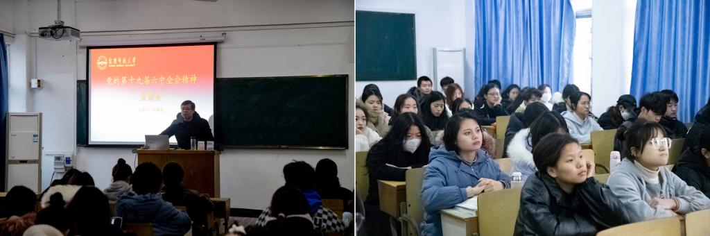 12月29日,黄梅剧艺术学院直属党支部书记汪博武为学院学生代表作学习贯彻党的十九届六中全会精神宣讲报告。2021级全体本科生及部分研究生代表参加了报告会。