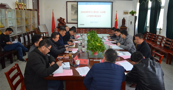 为全面贯彻落实新时代党的教育方针和全国教育工作大会精神,提高人才培养质量,切实推进光电信息科学与工程专业工程教育认证工作。电子工程与智能制造学院于12月6日在稼先楼二楼会议室召开了光电信息科学与工程专业人才培养方案(认证版)企业专家论证会。论证会邀请了合肥中科光博量子科技有限公司市场总监叶丛雷、安徽至博光电科技股份有限公司董事长秘书林继平、合肥琪峰光电科技有限公司总经理李传新和安徽兆利光电科技有限公司总经理胡学军等四位行业专家,学校教务处处长潘锦云、教学评建办主任黄兴帅,学院党委书记夏云高、院长董甲东、党委副书记关德军,副院长江善和、章礼华,电子系主任、办公室主任和光电信息教研室全体成员参加了本次论证会。论证会由董甲东主持。