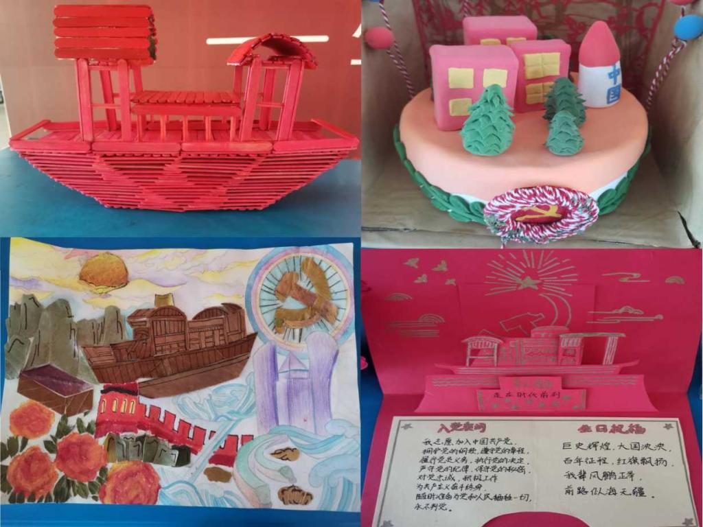 此外,利用冰棍制作的“红船”模型栩栩如生,精美的手工画“日出东方”和手工贺卡引起了同学们的兴趣,也赢得了阵阵赞叹。活动结束后,评委们对每场比赛进行了精辟的点评,对各组选手的精彩表现做出充分的肯定,同时也指出需要继续改进的地方,表达了对选手们的无限期望。