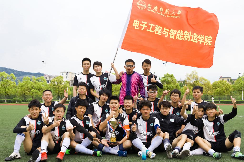 “嘘~”随着裁判一声哨响,决赛在电子工程与智能制造学院与计算机与信息学院中打响。八十分钟里,学院足球队成员奔跑在绿茵赛场,接球、运球、传球、射门一系列动作行如流水,灵活的“脚下功夫”让“黑白精灵”来回穿梭。学院队员点球大战中拿下3球打破比分1:1的僵局,完成点球绝杀,赢得冠军。