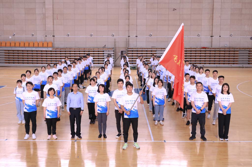 华秀梅为第一期“发展型资助”飞跃体测训练营授旗。她对此次体测训练营的正式开营表示祝贺,对体育学院给予训练营的全力支持和辛勤付出表示感谢。她表示,学校党委高度重视学生身体素质培养,指导校体委持续开展了一系列体育教育教学改革,为学生们提供了多层次、多样化的体育运动活动项目。她强调,体育始终伴随着中华民族的浮沉兴衰,也始终与中国革命、建设、改革的历史相伴而生。她从中国共产党推动体育事业发展的百年历史进程及基本经验启示,向同学们阐释了强健的体魄之于国家、民族和个人的重要意义,希望全体学员珍惜本次公益体测训练营的锻炼机会,在训练中享受乐趣、增强体质、健全人格、锻炼意志。