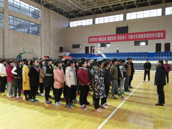 12月21日中午,beat365龙舟队队员选拔工作在校体育馆室内篮球场举行,体育学院副院长、校体艺委副主任章翔作动员讲话。
