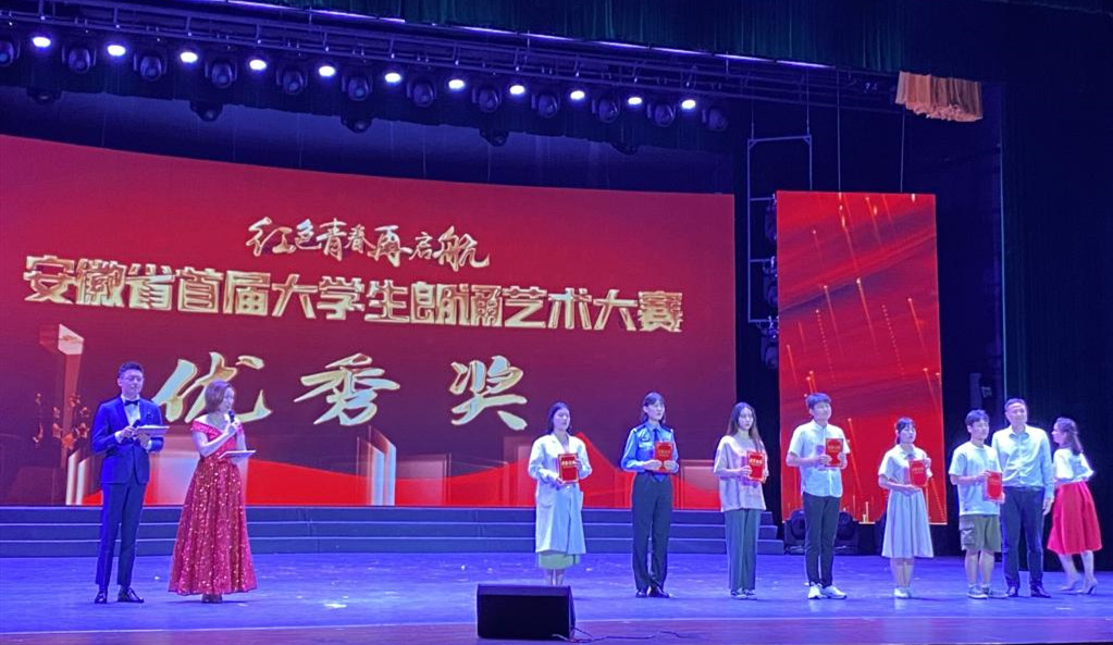 6月18日,“红色青春再起航”安徽省首届大学生朗诵艺术大赛决赛暨颁奖典礼在安徽艺术学院顺利闭幕,黄梅剧艺术学院程诗怡、腾亮两位同学参加决赛并朗诵作品《为祖国而歌》,最终荣获优秀奖。