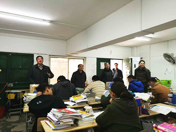 12月12日,物理与电气工程学院党总支书记金根山、院长张杰、副院长江巨浪、副院长兼副书记江贵生带领全体毕业班辅导员老师前往考研自习室看望慰问正在备战的考研学生。