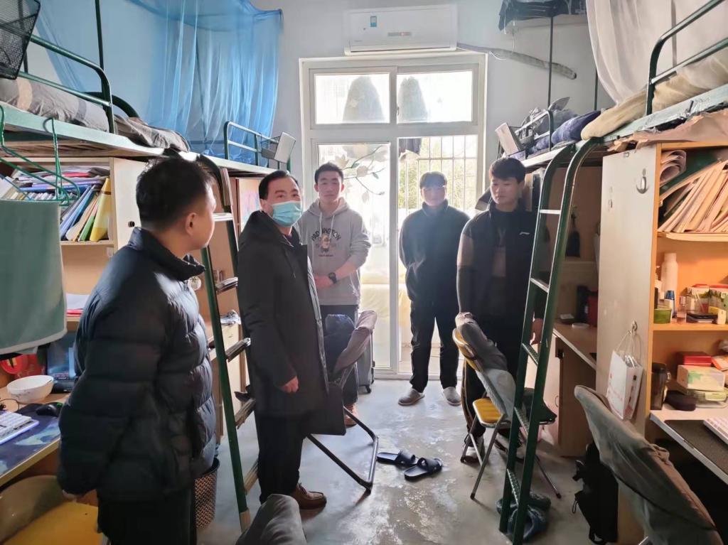 走访过程中,金忠良一行与同学们亲切交谈,询问了同学们的寒假生活、实践活动、考研就业、毕业论文等情况,查看了宿舍各种设施情况,提醒同学们当好自己健康的第一责任人,按时完成学校核酸检测,注意个人安全防护,保持宿舍环境卫生,调整好状态,尽快适应新学期的学习生活,做好合理规划。在走访本科毕业班学生宿舍时,金忠良详细了解了同学们的考研、就业、教师资格证考试等情况,希望同学们做好充分准备,树立正确的就业观,鼓励大家多渠道实现人生理想。