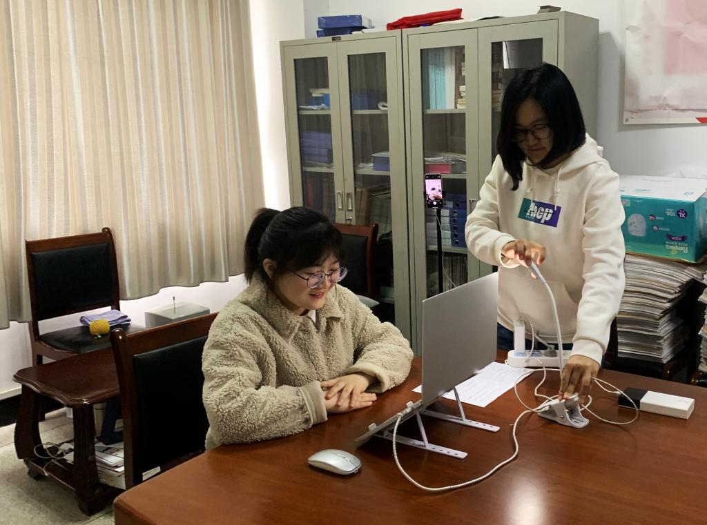参加江苏大学复试的学生程海廷说:“在复试过程中真切感受到学院的温暖,办公室的设备很齐全,给我提供专业的手机支架和台灯,对接的学姐在复试前亲自帮我调整设备,给我加油打气缓解紧张的情绪,在复试过程中学姐还一直在门外等待,避免环境的嘈杂,让我非常安心。”