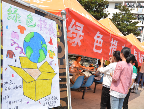 在两天的活动时间里,所有工作人员和志愿者们顶着烈日宣传、打包衣物,即使汗流浃背,也没有一声抱怨。在他们辛勤努力下,本次活动成果颇丰,不仅外国语学院的同学积极参与,其他学院的同学们也纷纷捐献出自己的衣物,最终共募得衣物三百余件。据活动负责人张苹苹介绍,所捐赠的衣物会送给安庆当地的低保户、养老院等机构,也可能会送到西藏等偏远地区。“我们将这些衣服合理利用,既帮助了那些经济状况不好的人,也减少了浪费。我们学院去年也办了‘绿色捐衣’活动,效果很好,相信今年也会一样。绿色捐衣活动是我们外国语学院每年的传统活动,这不仅能使资源得到充分利用,避免了浪费,也加强了同学们的社会责任感,让他们更多的关注到那些需要帮助的人,献出自己的绵薄之力,在传递爱心的同时也收获了感动。”谈及此次活动的意义,负责人张苹苹这样说道。(文/王晴 杜琰蕾 学生记者 汪燕 图/学生记者 郭鑫)