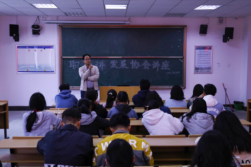 就业指导中心教师从专业要求、通用技能和自我素质三个方面介绍如何提高职业能力,并通过具体现实的案例分析帮助同学们更清晰地了解职业发展理念的相关知识。