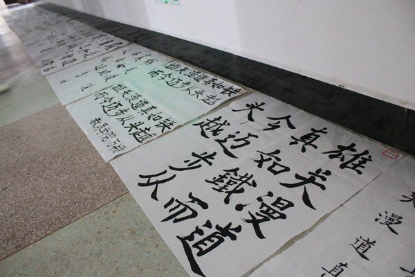 挥毫泼墨尽显学子才华,妙笔丹青展现传统魅力,长达一个多月的准备,800多人次的参与度,使得此次校园书画达人秀变得更加与众不同。“今年比赛前期宣传共绘制了6张精美海报,花费了很多精力。此外,还将比赛分为预赛和决赛,大大提高了同学们的参与度。”校学生会宣传部负责同学表示,今年刚好是长征胜利80周年,所以赛题都是选自毛主席的长征诗歌和富有正能量的语句,能更好地提高当代大学生的艺术修养、审美情趣,增强大学生对优秀国粹文化艺术的热爱。(文/图 曾辛瑀 吴妍 朱丽萍 王培鑫)