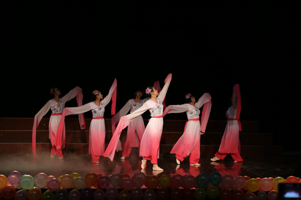 表演大部分由乐器、声乐组成,其间也穿插了让人眼前一亮的舞蹈。一袭舞裙,水袖飘飘,由宫悦等人带来的《惊鸿舞》一出场便吸引了现场观众的目光。在干冰营造的“仙气”中,她们的舞姿柔美轻盈。新疆舞《花儿为什么这样红》则是以活泼的音乐和轻快的动作收获了阵阵掌声。