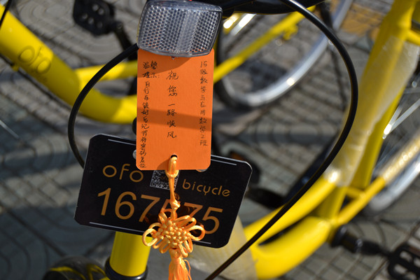 最近,你是不是发现了系在校园内ofo小黄车上的卡片和卡片上的标语?红色绳子系着橘色卡片配上中国结,摇曳在风中格外抢眼。原来,这是2015级数学与应用数学2班开展的围绕校园小黄车文明使用的团日活动。