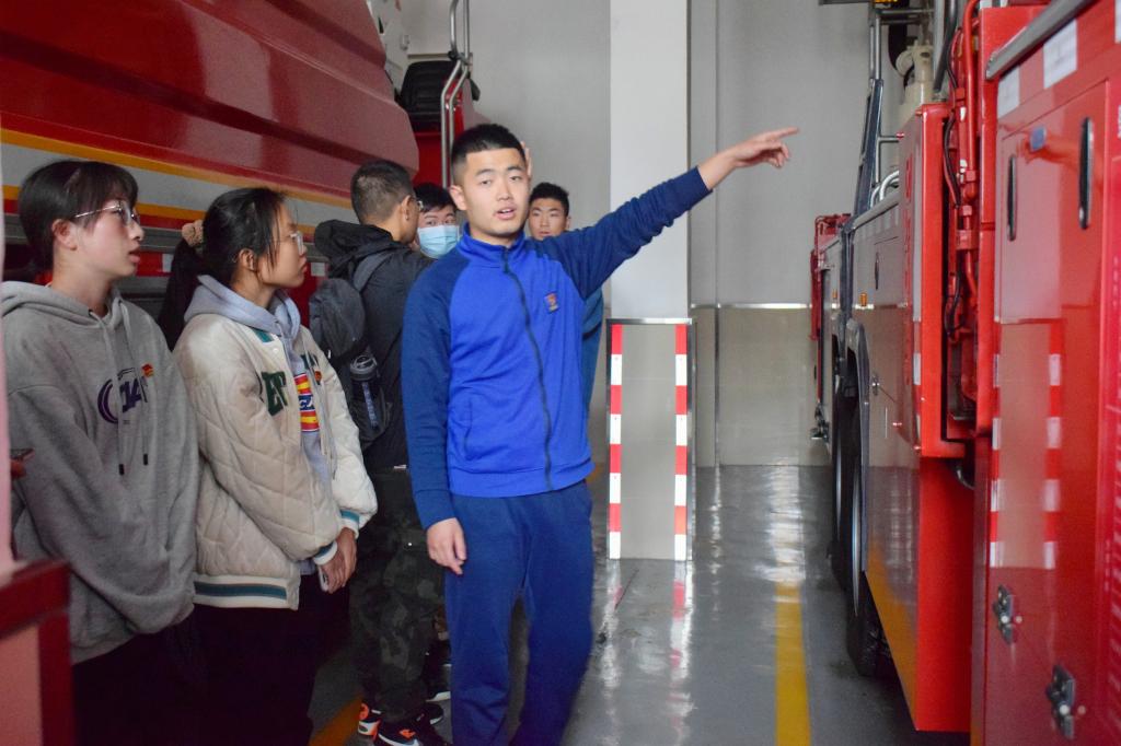 消防员向同学们说明了出警前穿戴消防衣的步骤和注意事项。随后,在消防员的指导下,同学们进行了消防衣穿戴大比拼活动。2021级历史学3班的刘敏体验过后说:“消防服很笨重,穿上去也比较困难,真是无法想象消防员经过怎样刻苦的训练才能做到在火场上穿梭自如,这让我认识到消防工作的辛苦,同时也让我在生活中更加注意安全用电用火。”