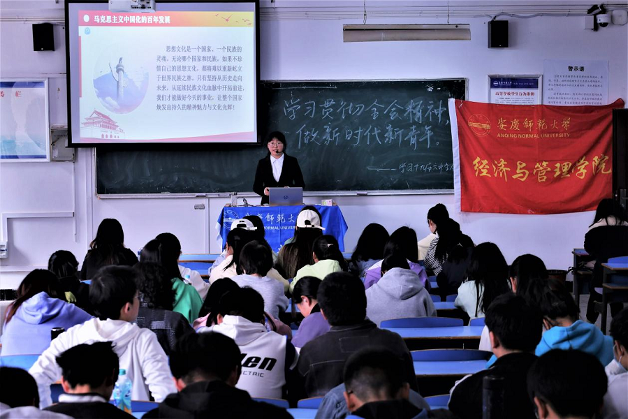 为深入学习贯彻党的十九届六中全会精神,引导青年学生学习中国共产党百年奋斗的伟大成就和历史经验,4月4日,校“青年新声”宣讲团以“学习贯彻十九届六中全会精神,做新时代新青年”为主题,在C208教室为经济与管理学院150余名学生骨干带来了一场别开生面的理论宣讲报告。