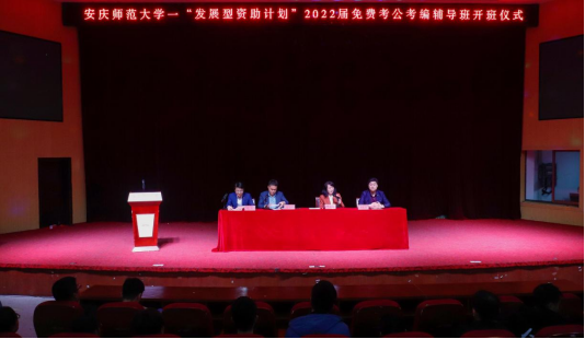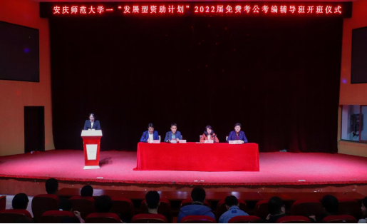 为扎实开展党史学习教育“我为群众办实事”实践活动,不断创新资助育人形式,全面实施“发展型资助育人计划”,10月16日,学校举行“发展型资助计划”2022届免费考公考编辅导班开班仪式。学生处副处长华秀梅、安徽人才有限公司董事长高玉田、安徽军创教育有限公司总经理曹光生、2022届免费考公考编辅导班负责老师及全体学员参加开班仪式。