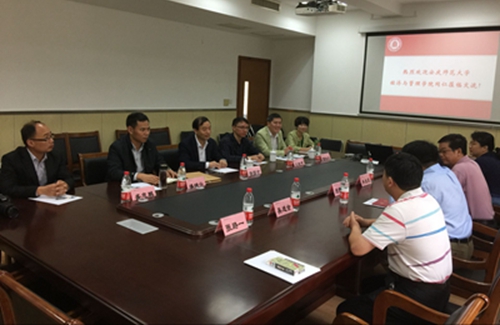 调研交流会上,杨国才向华东师范大学经济学院与会领导介绍了beat365经管学院专业建设情况,并就金融工程、国际经济与贸易专业的建设方案与华东师范大学经济学院与会人员开展了交流,重点讨论了课程设置与开设、实践教学、专业实习与毕业论文写作等内容。为加强交流合作,华东师范大学经济学院向杨国才院长颁发了兼职教授聘书。学院调研组参观了华东师范大学金融、国际贸易模拟实验室。