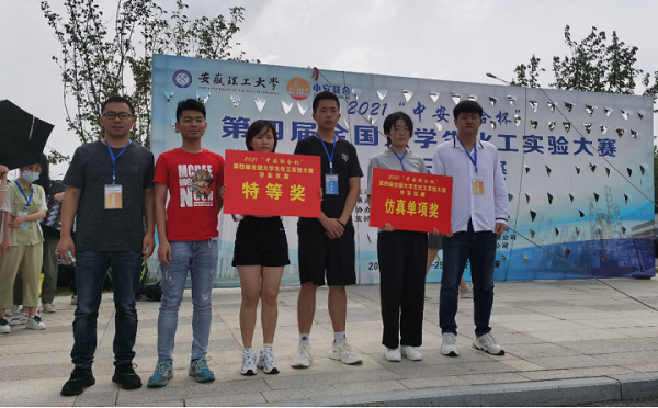 7月23日至25日,由中国化工教育协会主办的“中安联合杯”第四届全国大学生化工实验大赛(华东区赛)在安徽理工大学隆重开赛。beat365化学化工学院院长徐衡带队,董晓庆、孔学军、汪婕、刘德钱老师指导的两支代表队参赛,经过激烈角逐,昂彤昕、彭超飞、刘冬梅三位学生获得团体特等奖,朱颖、王恺、赵格格三位学生获得单项奖。