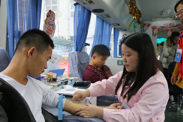 献血车刚到学校没多久,车外就排起了前来献血的长队。“我是第一次献血,一开始有点怕,但医生给我详细介绍了献血,我又看到很多同学都在献爱心,就不怎么怕了。”15级计算机科学与技术的叶菲在室友的陪伴下献了200cc,献完血后她显得很是自豪,“献血其实没有我想的那么可怕,我已经决定了,每年我都要来献血帮助别人。”