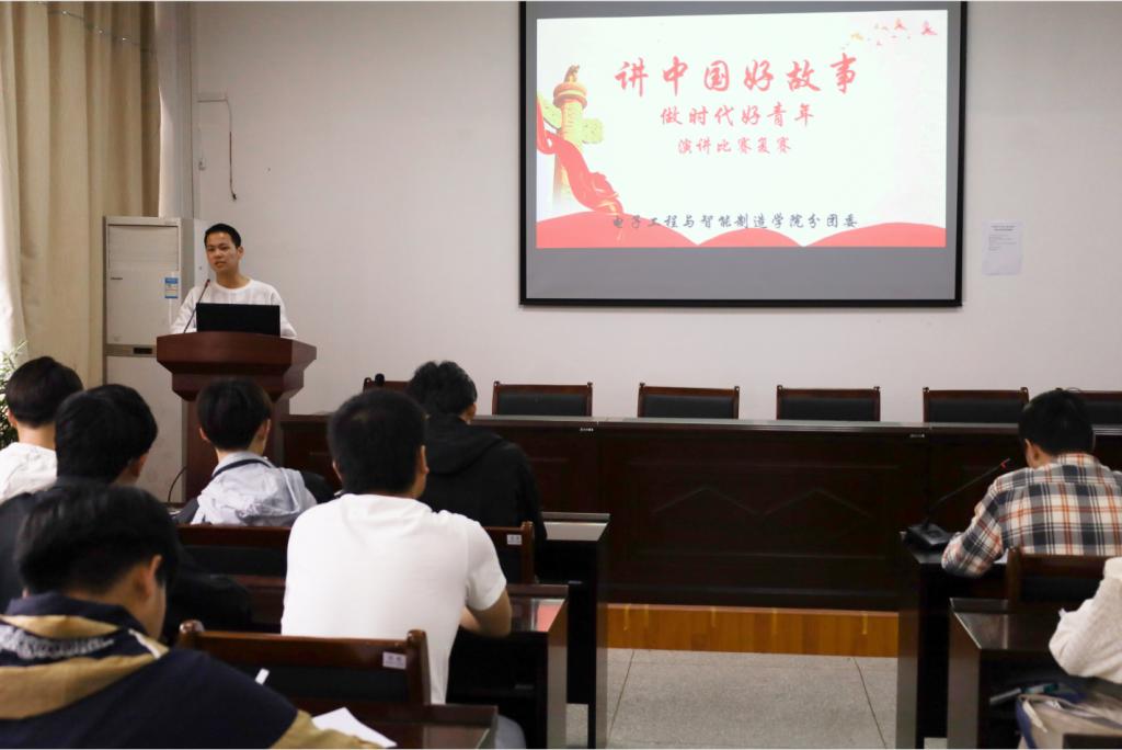 “承蒙先辈拼搏,中国雄姿重整,如今的我们接过了历史的交接棒……”微电子科学与工程专业2020级1班的学生潘原野演讲,赢得场下响起热烈的掌声。4月20日,电子工程与智能制造学院举行“讲中华好故事,争做时代好青年”演讲比赛。学院15名学生选手参加本次比赛,团委负责人陈秋生担任评委。