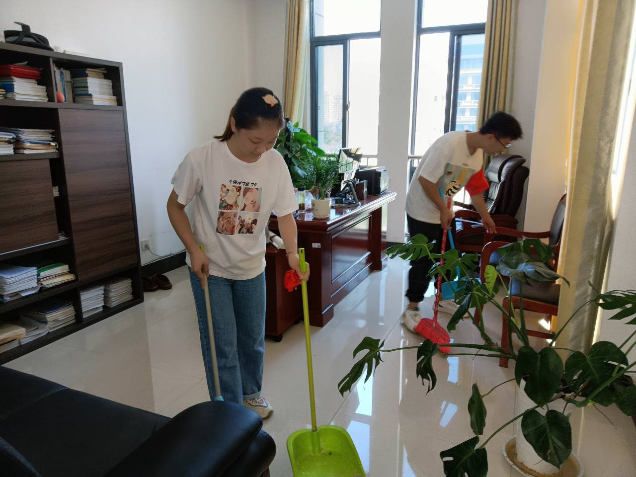 “老师,您好,今天是教师节,我想帮您打扫一下办公室。”上午九点,学院学生会办公组副组长、应用统计学专业2020(1)班的何佳唯带领4名学生准时来到学院老师办公室门口敲门询问,他们便开始了清扫、拖地、整理文件等行动,老师们纷纷表示感谢。