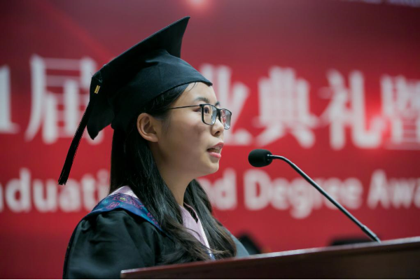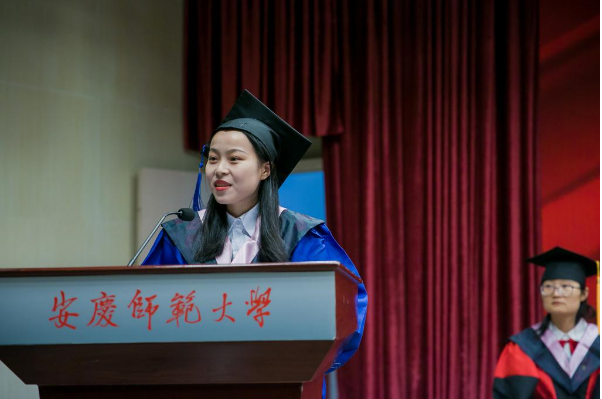 毕业班学生代表汪舒悦和吴康平分别发言,在诚恳真挚的言语间,她们代表全体毕业生表达了对母校、对老师深深的感激之情,也传递了为青春、为理想而拼搏奋斗的坚定信念。