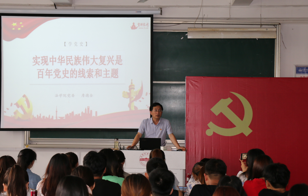7月1日,法学院党委书记詹德全为学生党员上了一堂题为“实现中华民族伟大复兴是百年党史的线索和主题”的专题党课。
