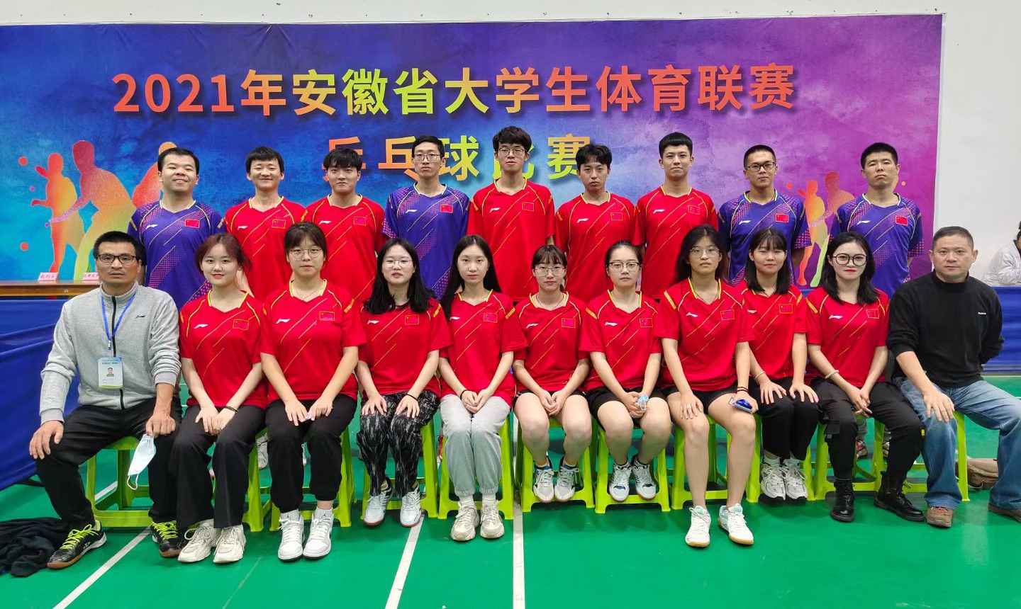 10月31日至11月7日, 2021年安徽省大学生体育联赛乒乓球比赛在淮南师范学院小球馆举行,beat365代表队分别参加了甲组和丙组的比赛。