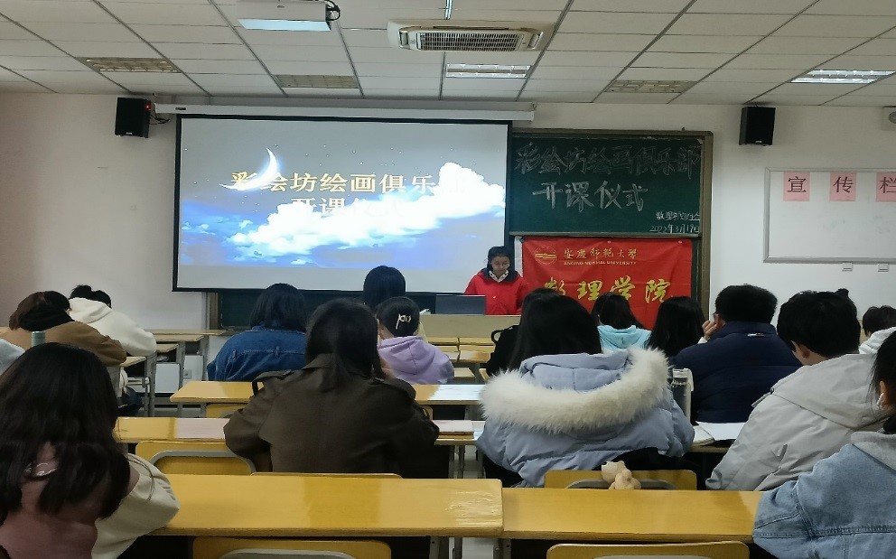 根据《beat365中国官方网站公共艺术教育实施方案》文件要求,为加强和推进学校公共艺术教育工作,提升学院学子艺术绘画水平,数理学院开设“彩绘坊”绘画俱乐部课程。3月19日,“彩绘坊”绘画俱乐部在数理楼201教室举行开班仪式,俱乐部全体成员参加了此次开班仪式。